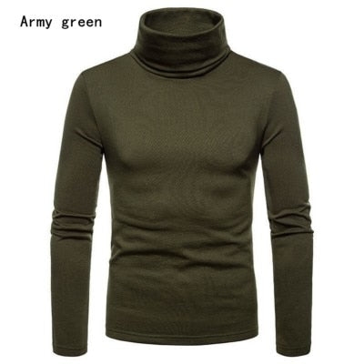 Men's Casual Slim Fit Basic Turtleneck Sweater Tops Knitted Pullover Sweater Turtleneck Pullover Male Double Collar Tops